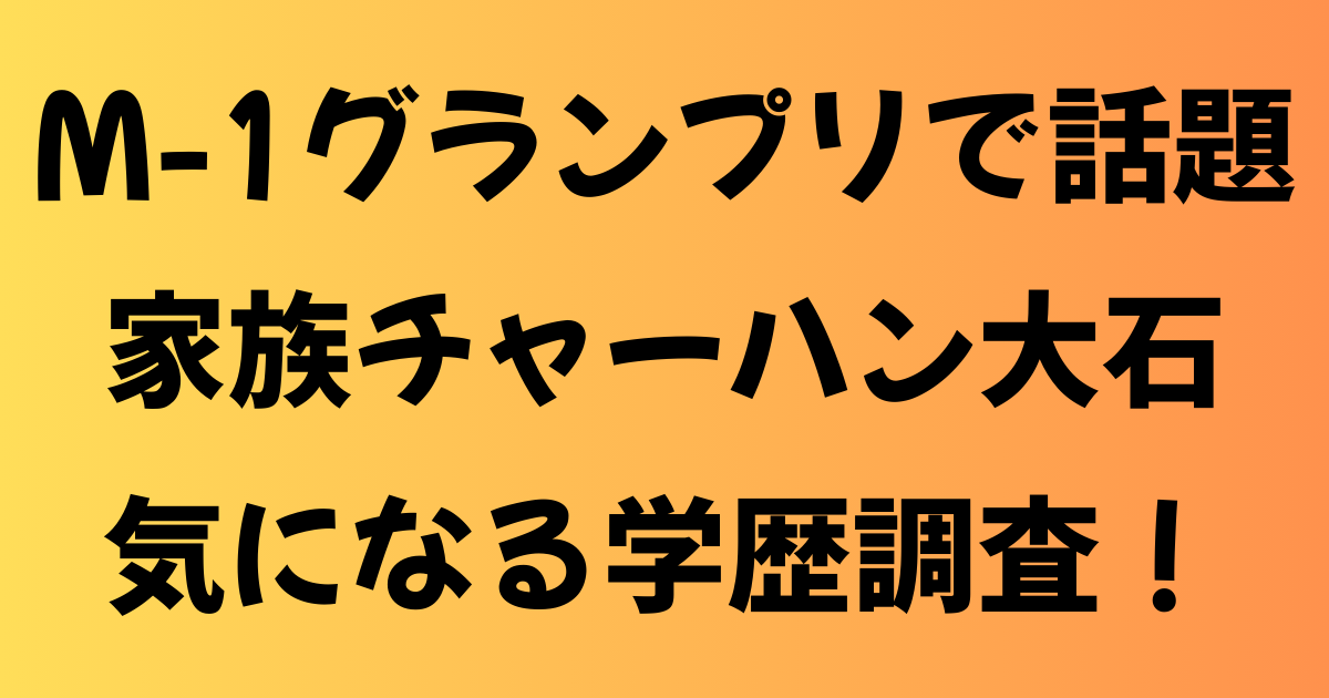 M-1グランプリでも注目を集める家族チャーハンですが、ボケ担当の大石さんがどんな学歴の持ち主なのか気になっている方も多いのではないでしょうか?
